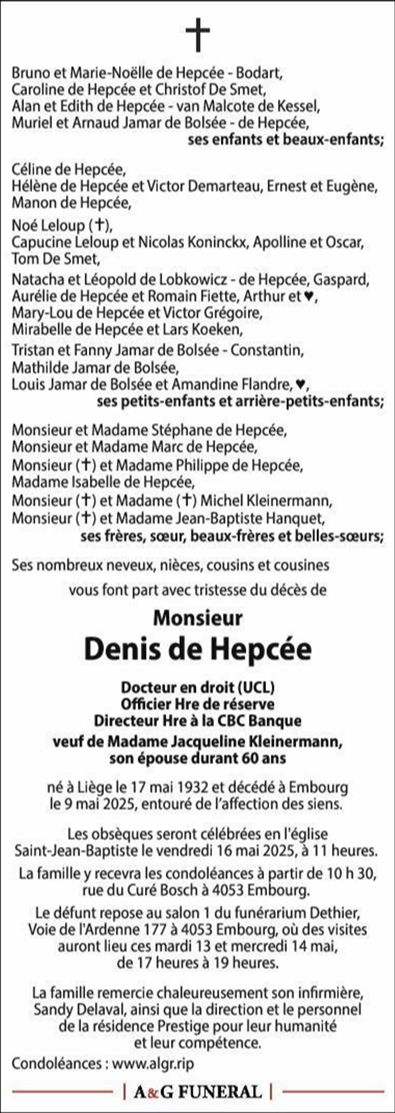 Décédé à Embourg (4053) le vendredi 9 mai 2025 à l'âge de 92 ans