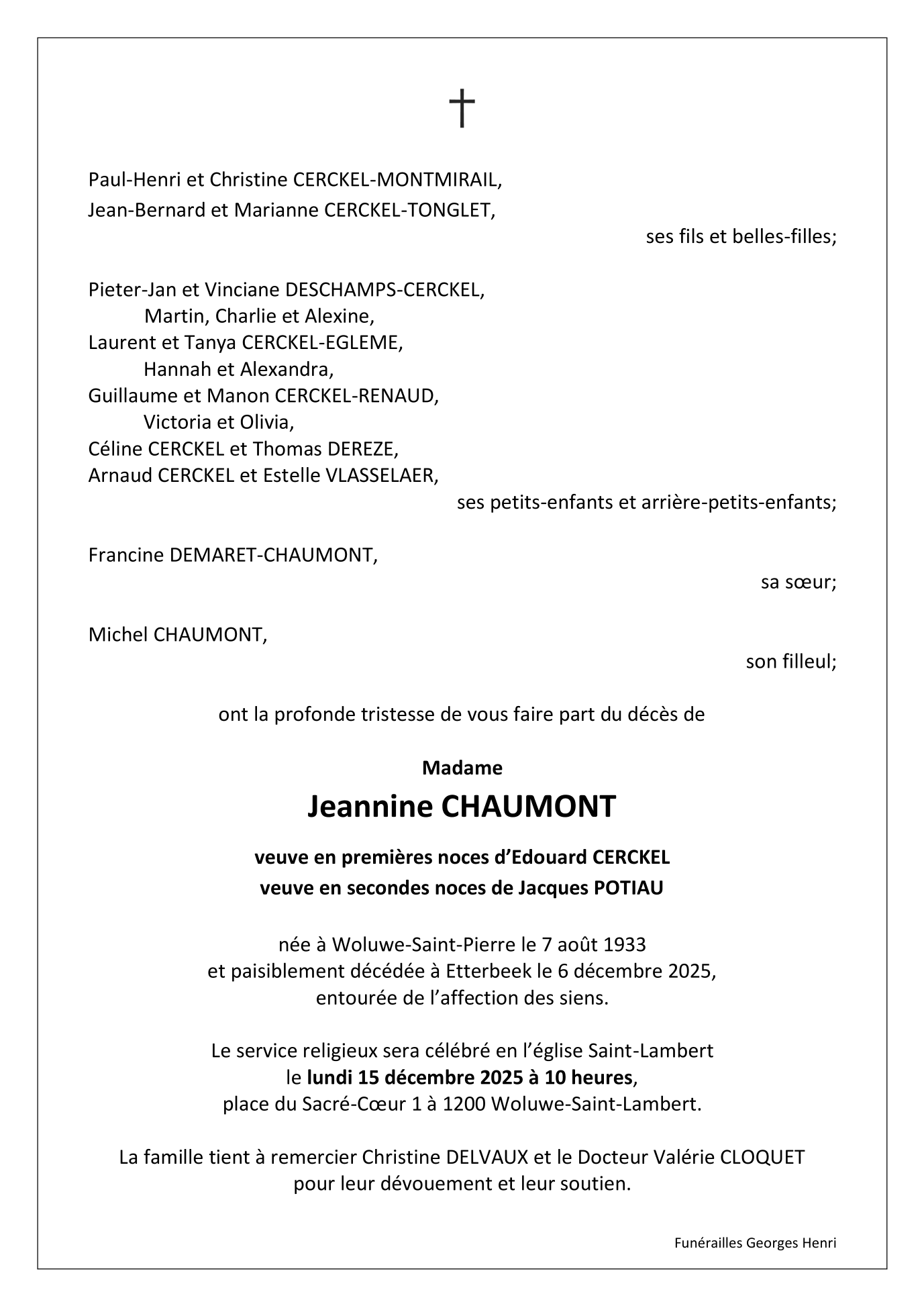 Veuve de Monsieur Edouard CERCKEL